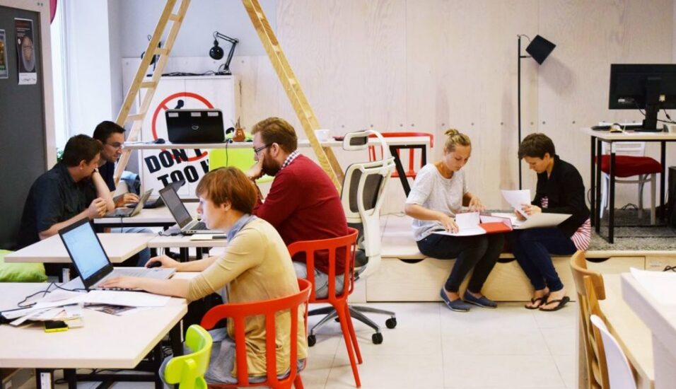 50 metrów kw. kreatywnej powierzchni do codziennej pracy, a także do wykorzystania podczas szkoleń, warsztatów, konferencji. Każdego dnia biurka na open space wynajmują coworkerzy, którzy tu rozwijają swoje projekty, wybierając miejsce do pracy w centrum miasta wśród inspirującej społeczności reprezentującej różne branże – zamiast pracy w domu w pojedynkę. Open space wyposażony jest w 13 stanowisk pracy, projektor multimedialny, ekran, nagłośnienie. Szybki Internet. Duże okna wpuszczają przyjemne światło dzienne i pozwalają poczuć dynamiczny rytm centrum miasta.
